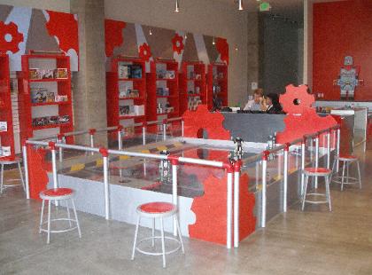 robot battle arenas, where you can battle the stores own